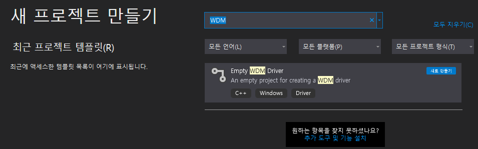 설치가 끝나면 Visual Studio에서 Empty WDM Driver를 찾아서 만들어준다.